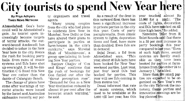 - In Celebrations, Travel
